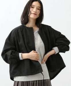 studio CLIP コート アウター 「natural by clip」綿麻撥水ギャザーブルゾン レディース