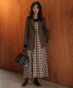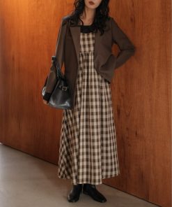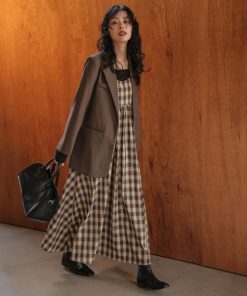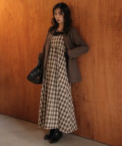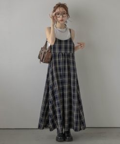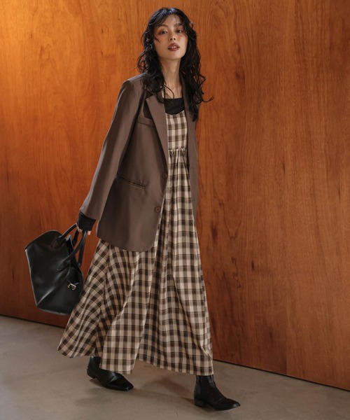 キーワード:ワンピース チェック ノースリーブ フレア ロング ガーリー デート 夏 春 大人カジュアル 旅行