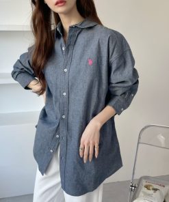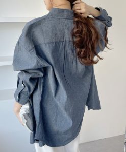 キーワード:ブラウス シャツ レディース コットン ストライプ レギュラーカラー ロング丈 長袖