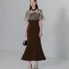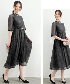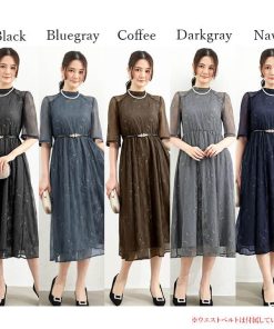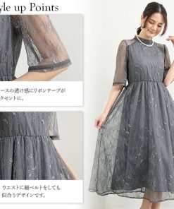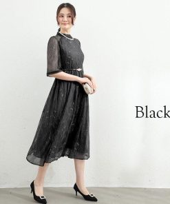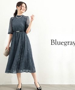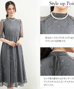 You Color ロングドレス パーティードレス バックリボン ドレス レディース 半袖 五分袖 ハイネック 透け感 結婚式 謝恩会 発表会 かわいい きれいめ 抜け感 大人 ycpt19
