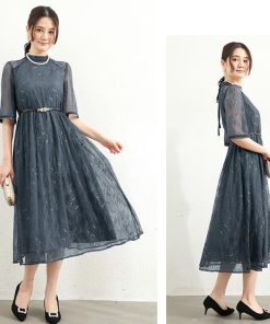 ロングドレス パーティードレス バックリボン ドレス レディース 半袖 五分袖 ハイネック 透け感 結婚式 謝恩会 発表会 かわいい きれいめ ゆったり 抜け感 大人 フォーマル セレモニー オールシーズン リボンテープ 大きいサイズ エレガント 上品 二次会 演奏会 同窓会 袖あり ycpt19
